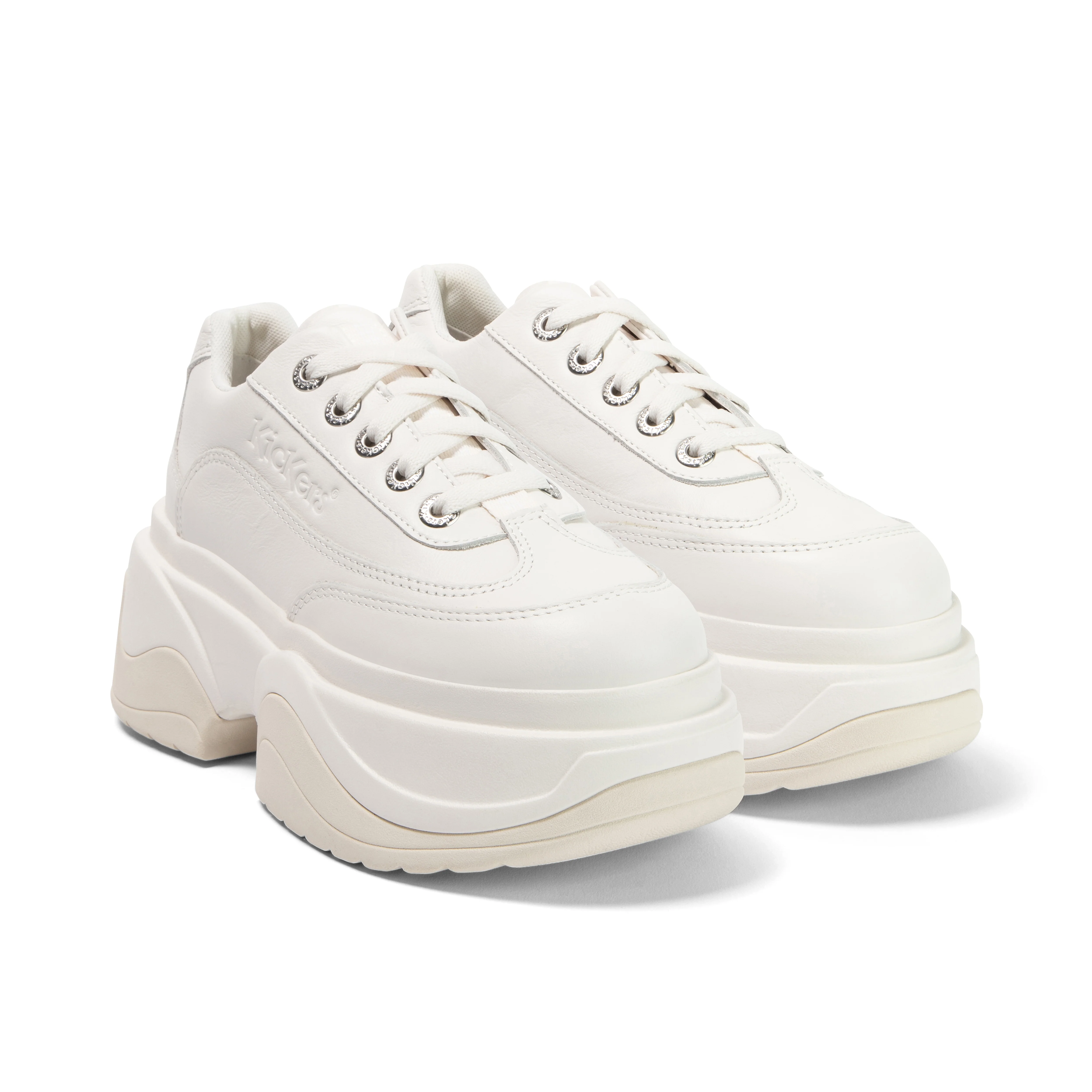 The newcomer that's been built like an icon - it's the Kade Lo. The chunky sole and them curved lines are inspired by key looks straight from the Kickers 00s archive. We doubt you'll find anything that compare to this pair. The panel detail and lace-up look will keep them in style for seasons, as will the the flatform base complete with our vintage inspired oversized logo. The main silhouette makes for the perfect alternative to your go-to sneaks. Dressed up and down, they'll take you everywhere.